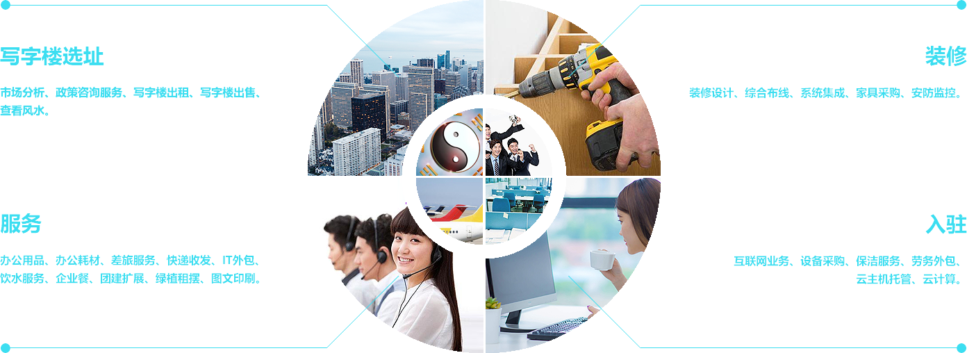 O管家为企业提供从写字楼选址、装修、入驻到后续各种所需的一整套解决方案。